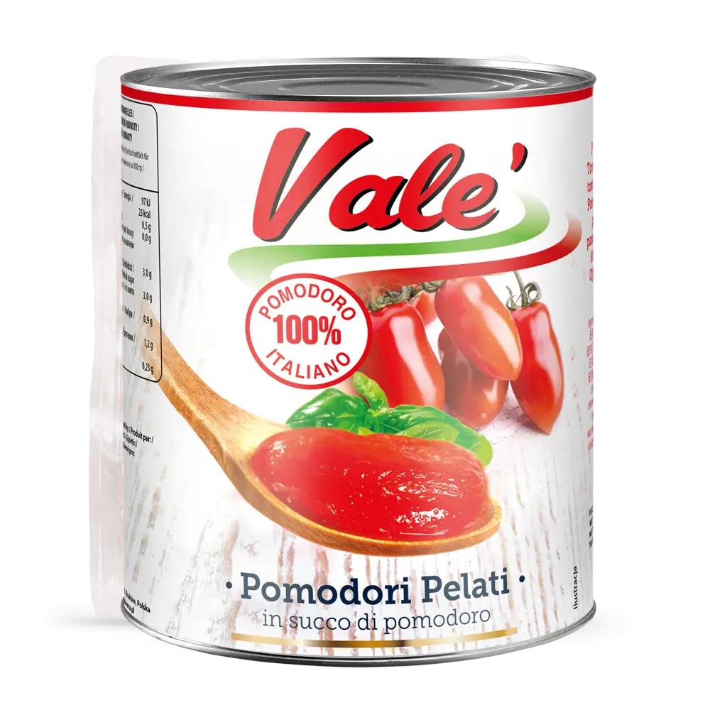 Томати Пелаті - це цілі, стиглі помідори, ретельно очищені від шкірки та занурені в натуральний томатний сік. Завдяки своїй універсальності вони ідеально підходять для соусів, супів, лазаньї або тушкованого м'яса. Вони зберігають свою текстуру та смак, що робить їх ідеальними для нарізання, змішування та тушкування. Пелати VALE - це чиста есенція томату без зайвих добавок, яка надасть вашим стравам неповторного смаку. Продукція VALE вирізняється високою якістю, оскільки виготовляється з найкращих стиглих томатів, зібраних в оптимальний момент. Вони незамінні як у домашній кухні, так і в закладах громадського харчування. Банки гарантують тривалий термін зберігання, зберігаючи свіжість.