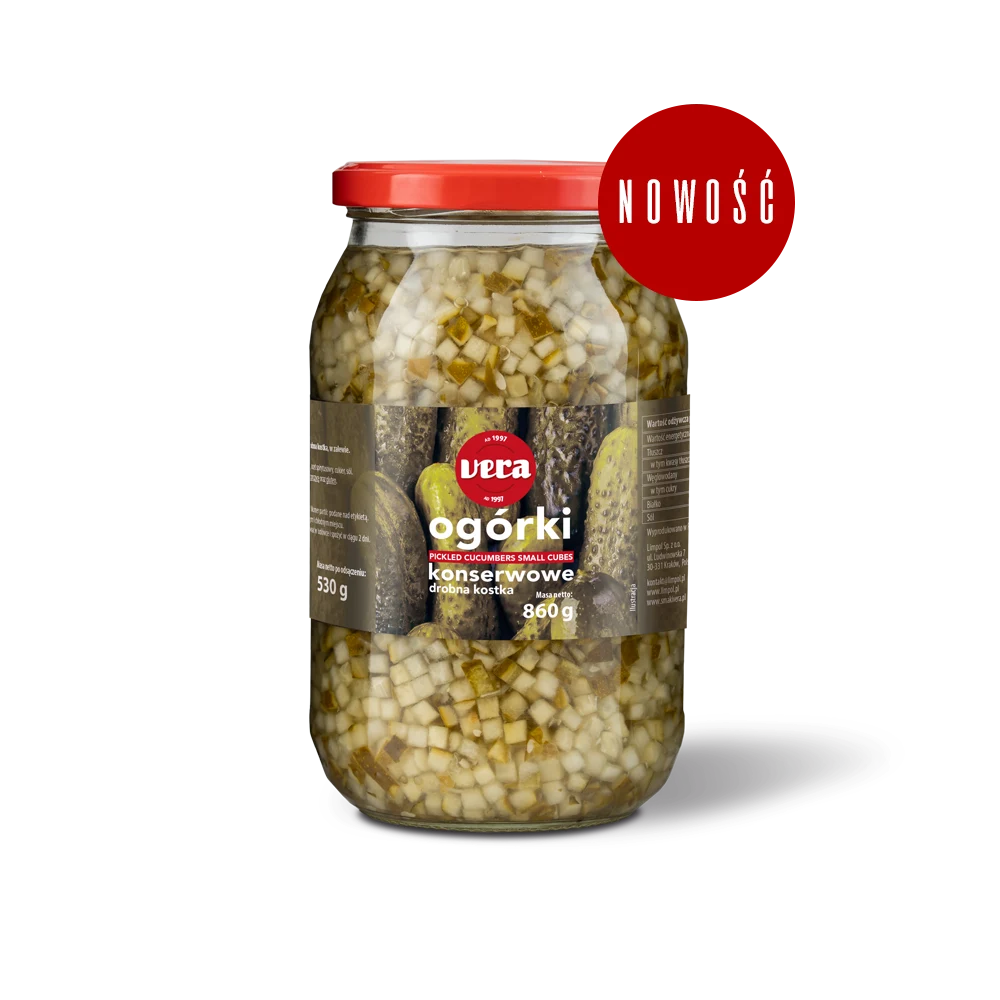 Zapomnij o mozolnym siekaniu! Ogórki konserwowe Vera pokrojone w drobną, równą kostkę w słoiku to idealne rozwiązanie dla każdego, kto ceni sobie wygodę bez kompromisów w smaku. Chrupiące, wyraziste i idealnie doprawione, są gotowe do użycia natychmiast po otwarciu słoika. Produkt dedykowany sektorowi HoReCa.
